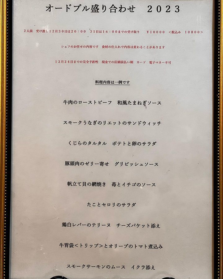 24日までの予約制 2人前 ¥10800