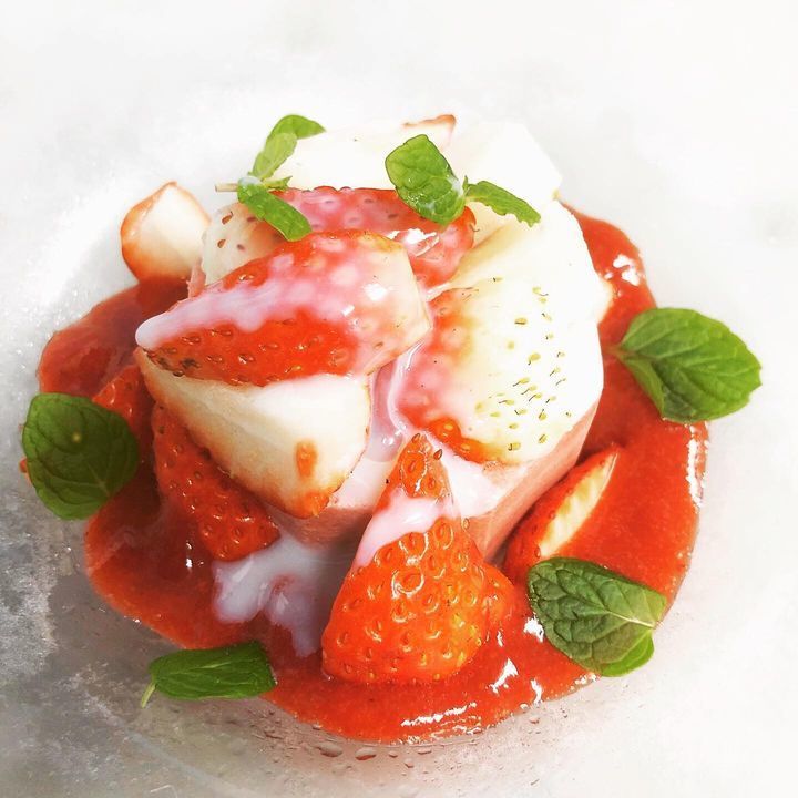 写真はいちごたっぷりのいちごのブランマンジェです🍓