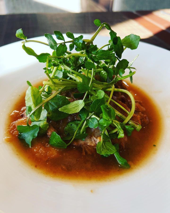 次のメニューは牡蠣とマグロとほうれん草のモルネーソース焼きです