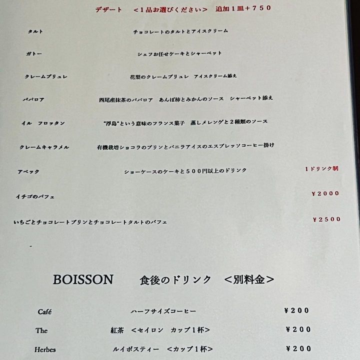 本日のランチ ディナー デザートメニューです