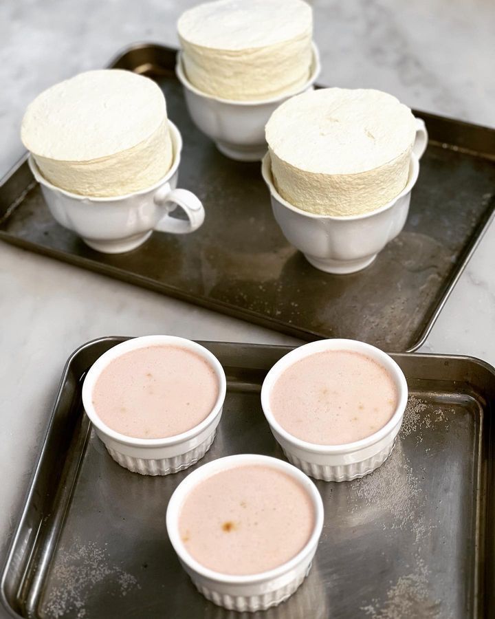写真はイルフロッタントといちごのプリンが焼き上がったところです