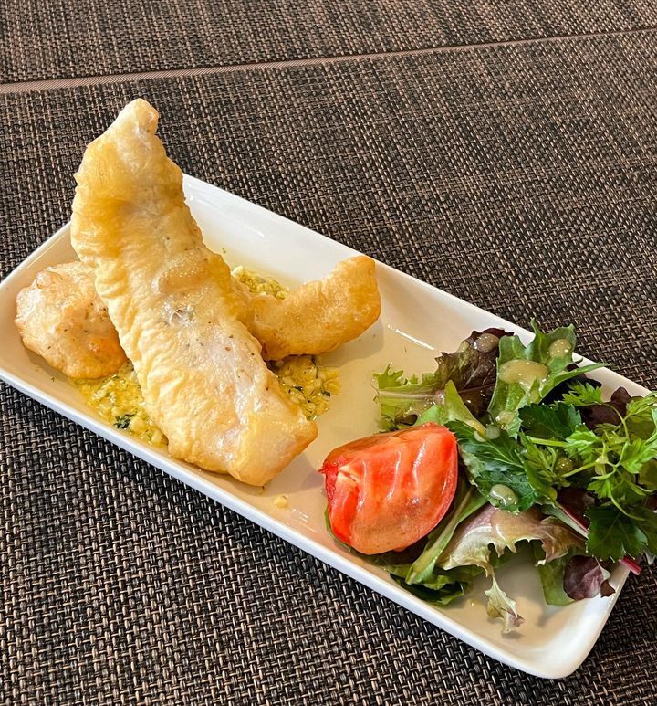 鶏ささみのプロバンス風フリットです ガルニのサラダも日替わりです