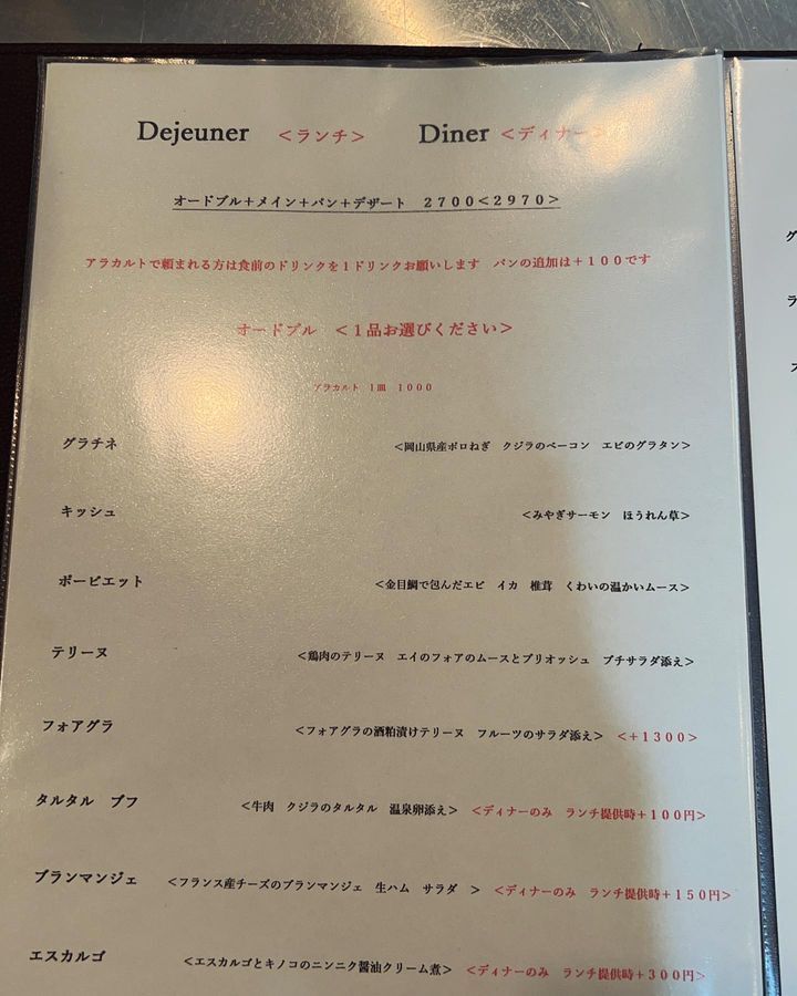 ■ランチ ディナー 2700円〜 オードブル+メイン+デザート