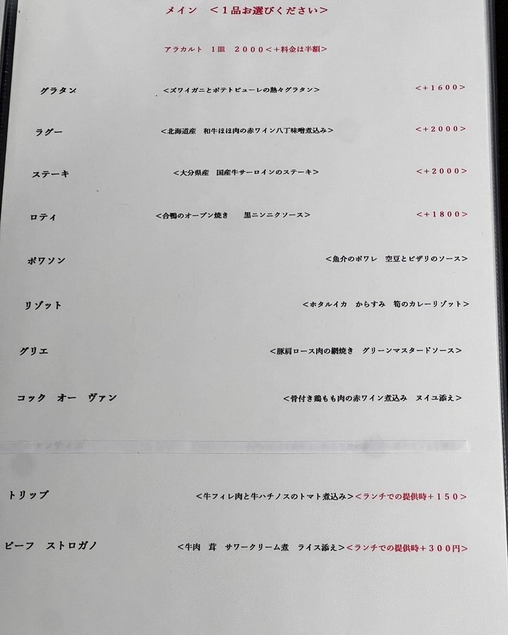 アラカルトの利用は1人1皿+食前1ドリンクお願いします