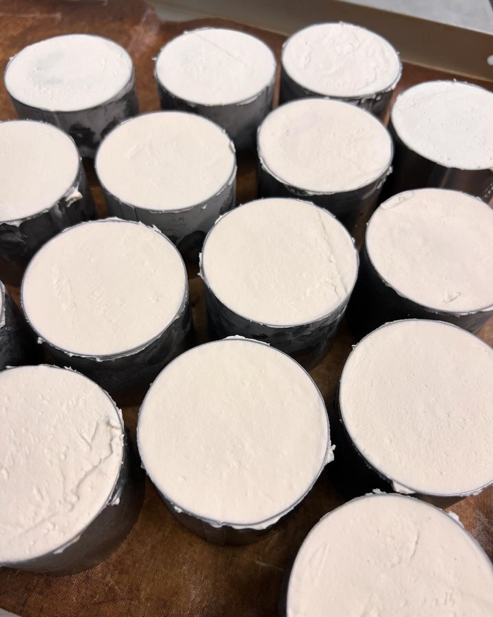 写真は新しいケーキの仕込み風景です 完成品は当日必要分だけ用意します