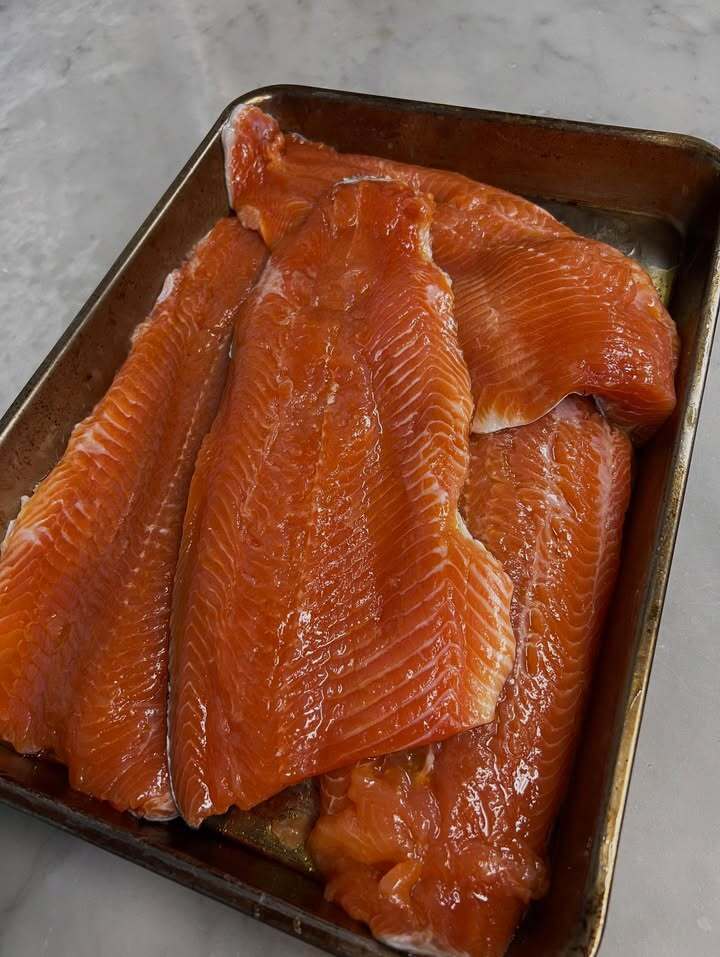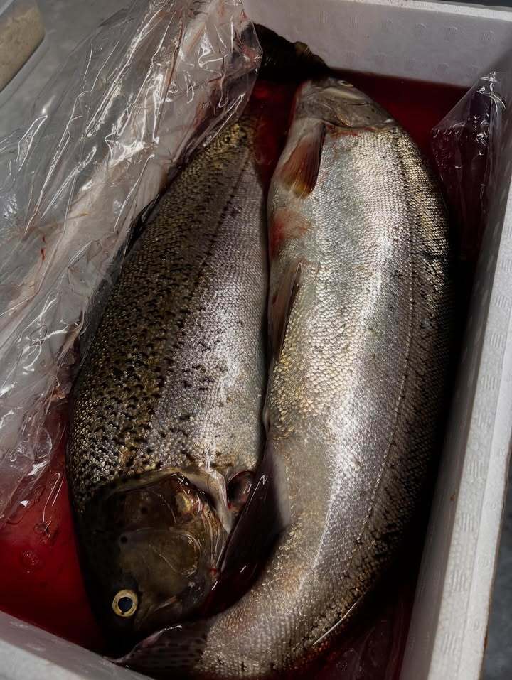 信州サーモンのマリネ プリフィクスコースの前菜で用意しています