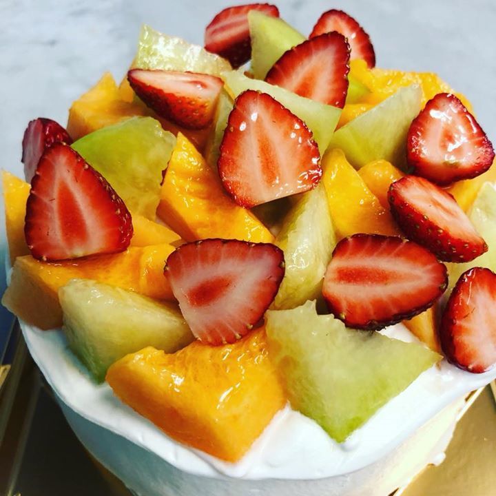 今日の特注ケーキです。メロンのショートケーキですが中身はイチゴです。リーヴルディマージュのホールケーキは2日前までの完全予約制です。当日のご予約や来店が大変多いのですが業務上当日は作ることができないのでご了承ください!