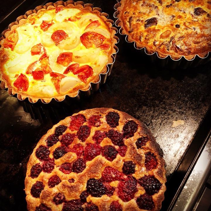 本日のランチメニューの紹介です。キッシュは4種類ありますが肉 魚 野菜を多く使ったものを用意しています。日替わりでお任せで出しています。テイクアウトも出来ますのでご利用ください。テイクアウトのタルトも新作が出ます。無農薬栽培の国産ブラックベリーの焼きタルトです。ランチのパスタメニューはフランス ロゼール産の仔羊のラグーソースのタリアテッレです。仔羊の首の肉を香草や香辛料のブイヨンで煮込みトマトソースと合わせてオーブンでさらにゆっくり煮込んでほぐした肉感の強いミートソースです。ボリューム重視のランチメニューにしています。暑い日が続く中食欲も落ちてきますが野菜を使った冷たいオードブルやデザートも用意しています。テイクアウトもカップに入れたブランマンジェやババロア ジュレや旬のフルーツを使ったさっぱりしたものを多めにしています。イートインでも桃のパフェやかき氷を用意してお待ちしています。