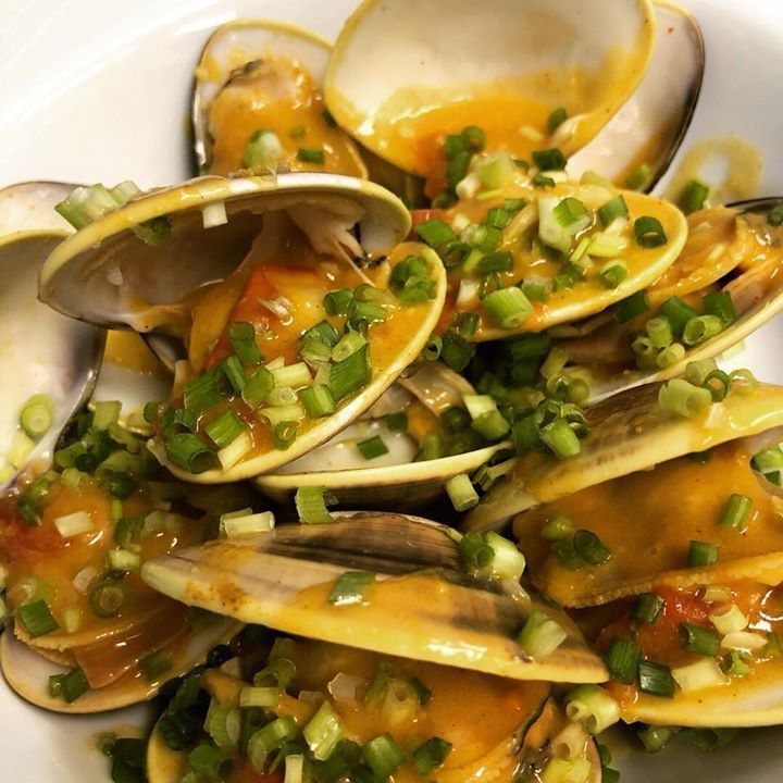 三重県産蛤のカレークリーム煮 そのジュで作ったリゾット。暑い日が続いて完全にバテていますが頑張って乗り切りましょう!この料理は蛤が手に入った時の特別料理です。ディナーのアラカルトで提供します。