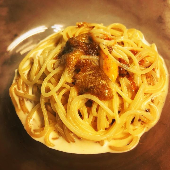 おはようございます!昨日は涼しかったのでお店の扉を全て開けての営業でした!久々にクーラーつけなくてもいい日でしたね。写真はディナーのコース料理のオードブル ひんやり冷たいウニのスパゲッティです。ディナーの料理はコース料理とアラカルトと用意しています。