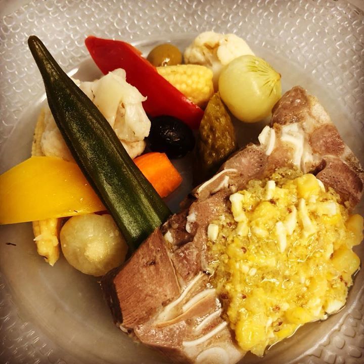 おはようございます。オードブルの紹介です。豚の頭の部位を使ったオードブル フロマージュ ド テットです。豚鼻 豚耳 豚舌を香草のブイヨンで時間をかけて煮てテリーヌ型に入れて冷やし固めます。酸味の効いたソースやマスタードなどと一緒に食べていただきます。コラーゲンたっぷりです。今日も頑張ります。